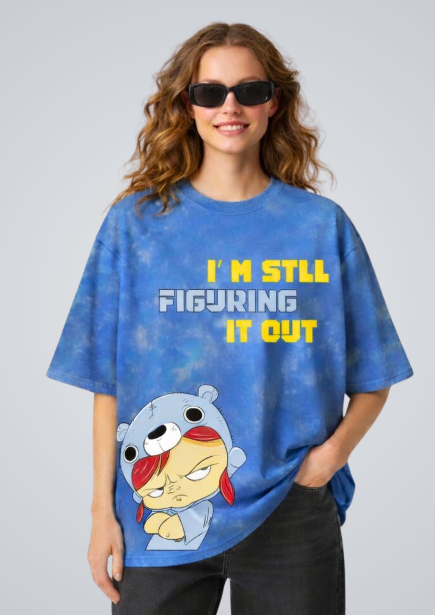 The deep blue acid wash finish adds a distinctive vintage texture, giving every piece a slightly unique character. Perfect for college, casual outings, and everyday street styling, this oversized streetwear t shirt in India delivers effortless confidence with modern edge.